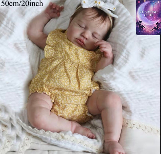 20-Inch Realistic Newborn Baby Doll with 3D-Painted Skin And Visible Veins, Featuring a Cloth Body And Vinyl Limbs, Perfect As a Birthday Gift for Kids