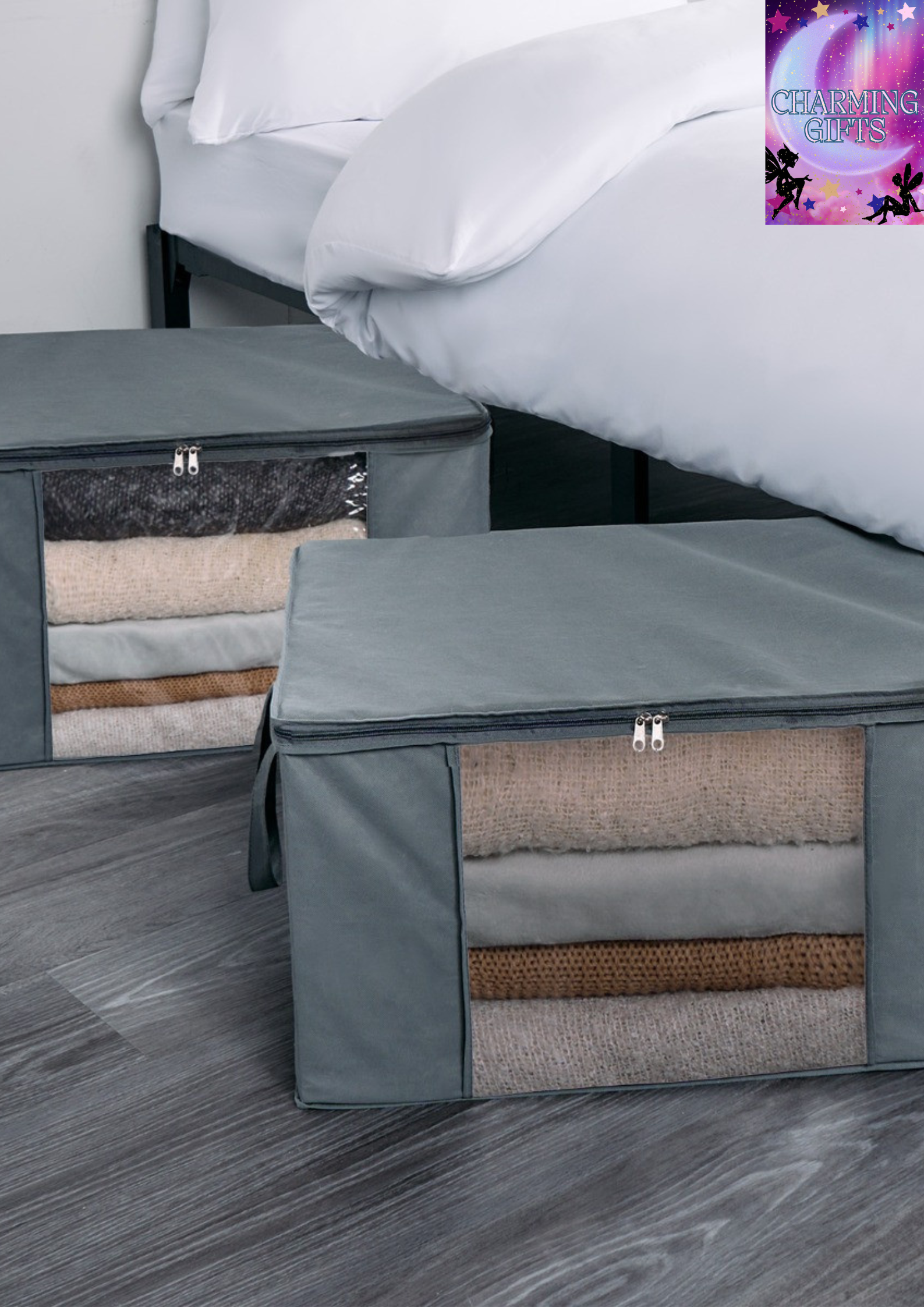 2 Pack 90.3L Underbed Large Clothes Storage Bag - Charcoal