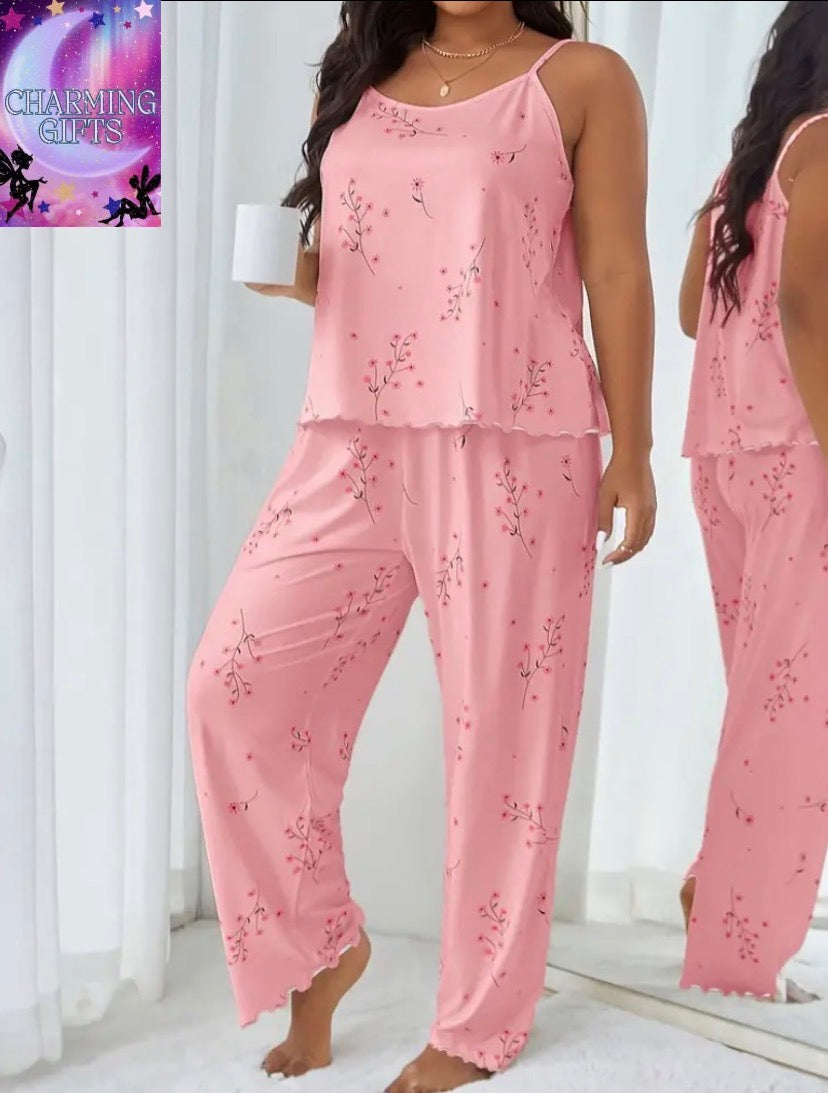 Drift off in style with our Sweet Floral Women’s Plus Size Cartoon Camisole and Pants Pajama Set – made just for you!