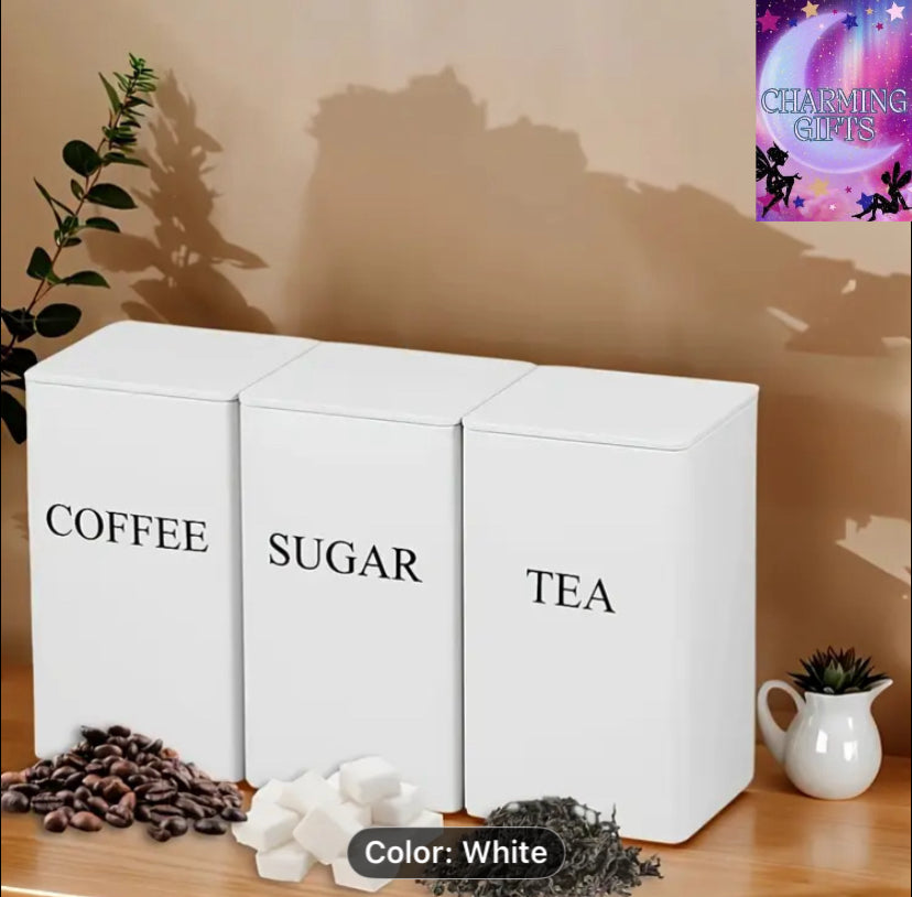 Three Piece Black/Beige Iron Storage Jar, Used for Storing Tea, Sugar, And Coffee Containers in The Kitchen, Suitable for Office, Home Storage, And Dining Rooms